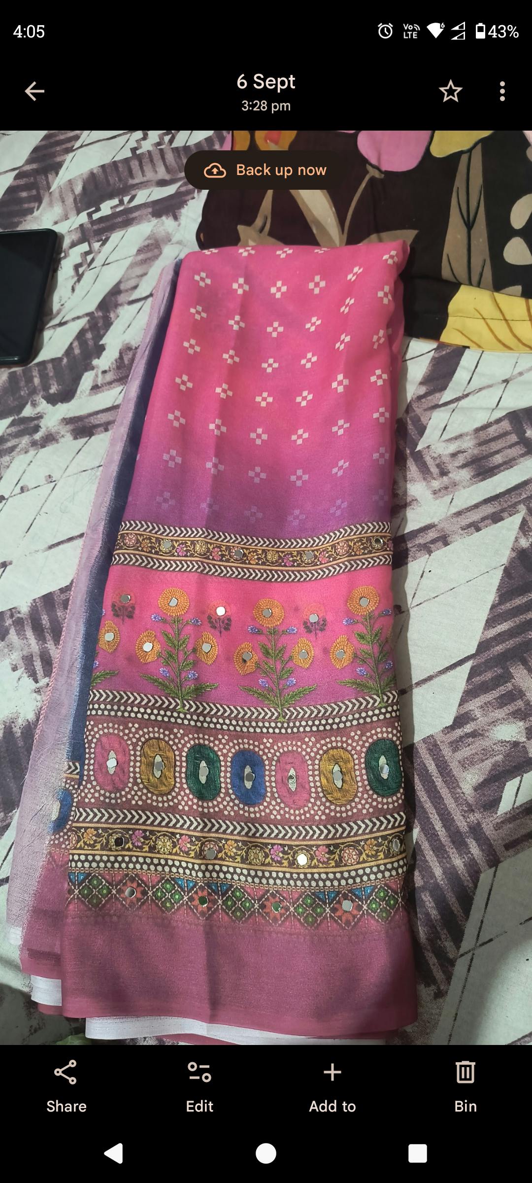 Description- Heavy Marsh mellow georgette saree with bandhej digital print and mirror work(2500 unit) all over sarees attached with perfectly matched pallu & blouse piece